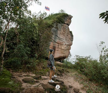 มาเดินเส้นทางศึกษาธรรมชาติ ลานหินปุ่ม-ผาชูธง เส้นทางเป็นวงกลม ระยะทางประมาณ 2.8 กิโลเมตร มีมัคคุเทศก์ท้องถิ่นนำเข้าชมและและบรรยายเรื่องประวัติศาสตร์ไว้บริการนักท่องเที่ยว กับชมวิวสวยๆตลอดทางเดิน และดอกไม้ป่า นานาชนิด ที่ออกดอกมาให้ได้ชมกัน อีกทั้งยังสัมผัสอากาศหนาว และหมอกจางๆ เพราะที่นี่อากาศเย็นตลอดทั้งปีเลย